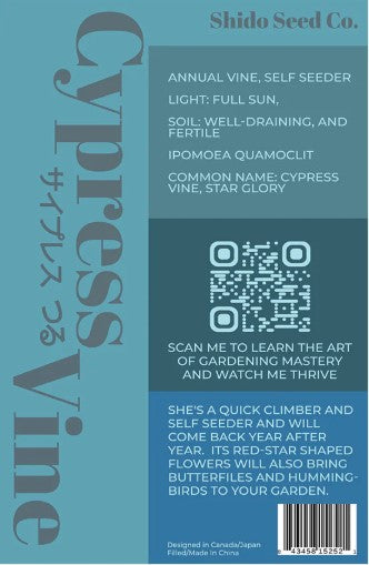 Cypressvine Star Glory (Ipomoea quamoclit), also known simply as Cypress Vine, is a fast-growing, twining annual vine that belongs to the morning glory family (Convolvulaceae). This plant is cherished for its delicate, feathery foliage and striking, star-shaped flowers that attract hummingbirds, butterflies, and other pollinators. Cypressvine is commonly grown as an ornamental climber for trellises, fences, and arbors. Its ability to thrive in various conditions, coupled with its rapid growth, makes it an excellent choice for gardeners seeking quick vertical coverage. Cypressvine Star Glory is a fast-growing, ornamental vine that adds beauty, height, and pollinator attraction to gardens. With its delicate foliage, star-shaped flowers, and climbing habit, it is an excellent choice for trellises, fences, and vertical gardening.